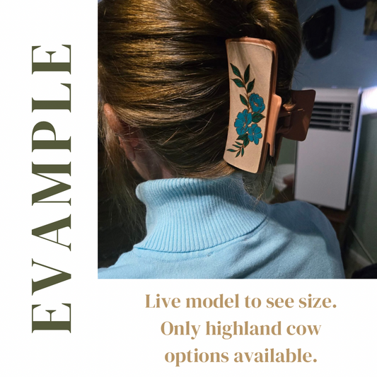 Handcrafted Highland Cow Hair Clip by Diamond K Leathers. Unique leather design 4" clip